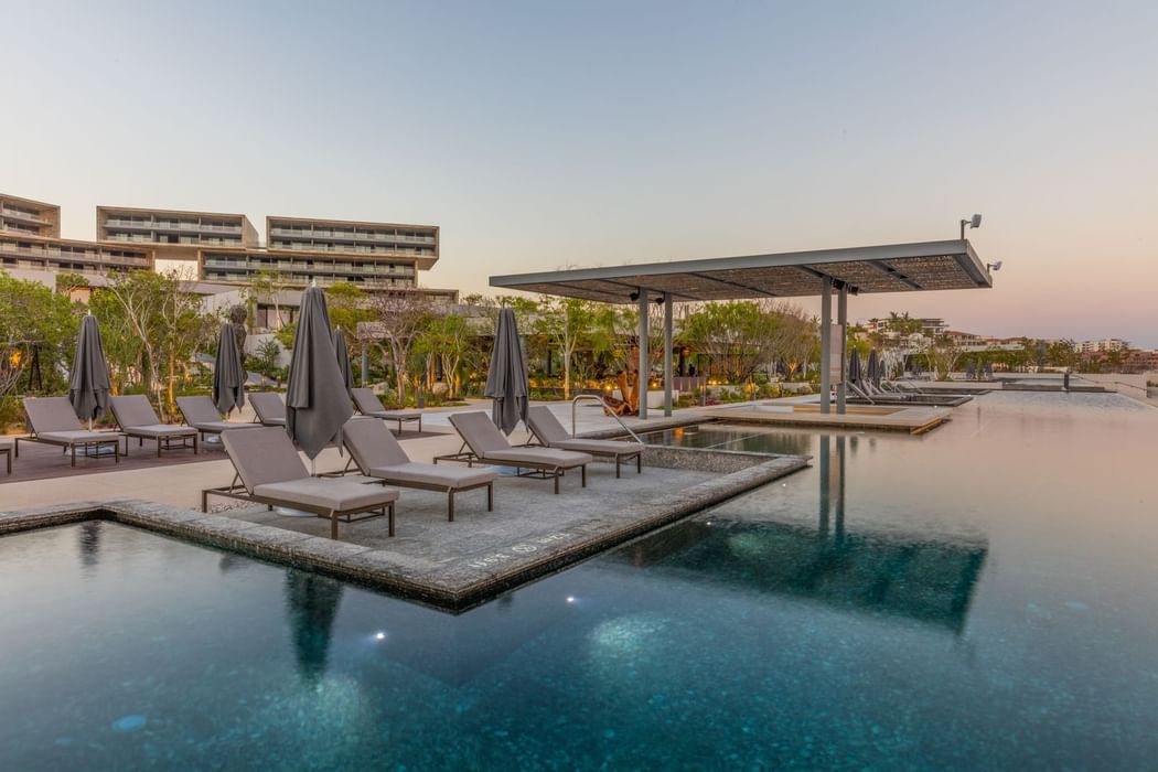 Immerse yourself in our four infinity pools, each luxuriously lined with butterfly green granite, simulating the turquoise waters of the Sea of Cortez.